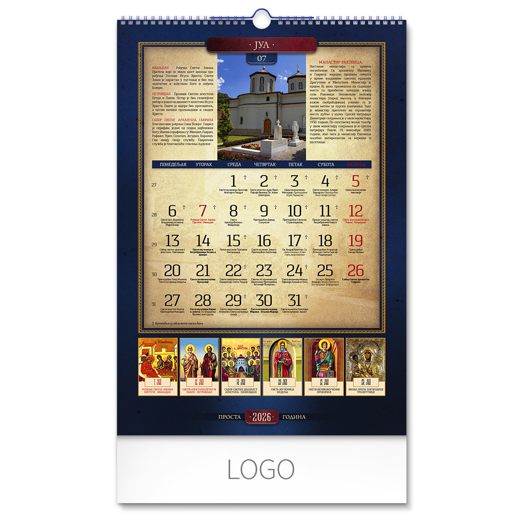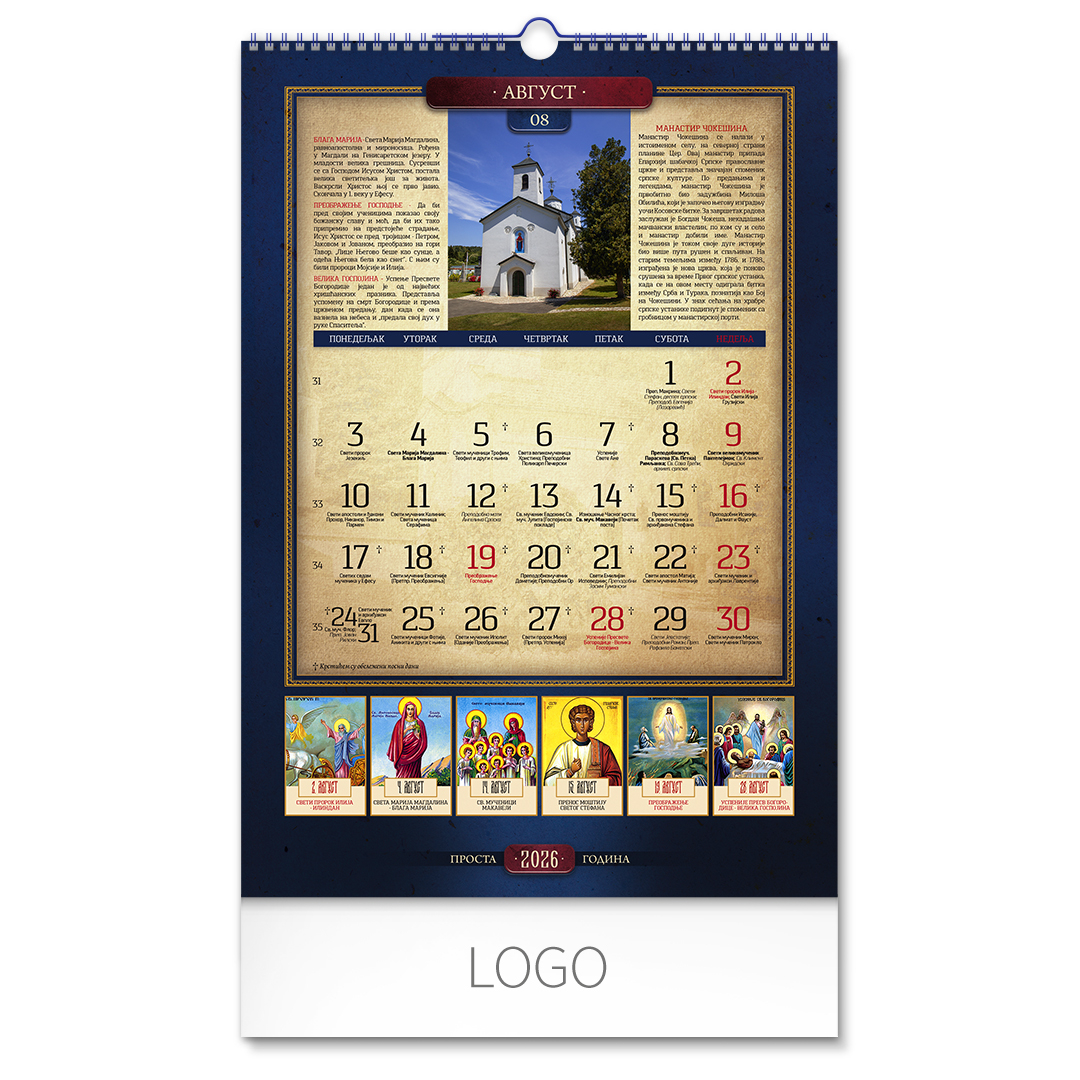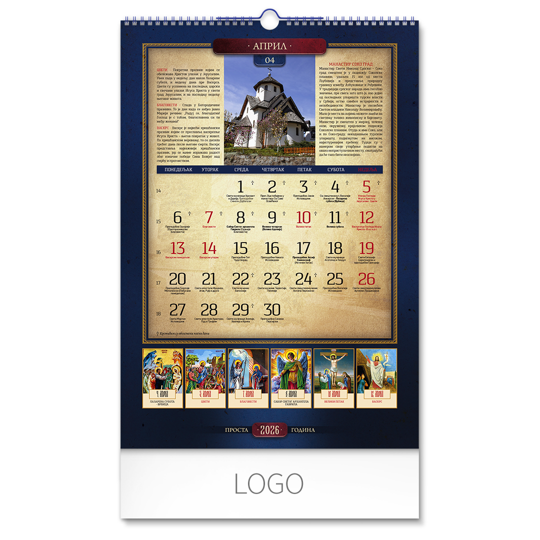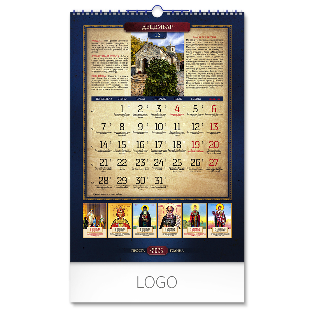 Zidni kalendar: 13 listova, mesečni