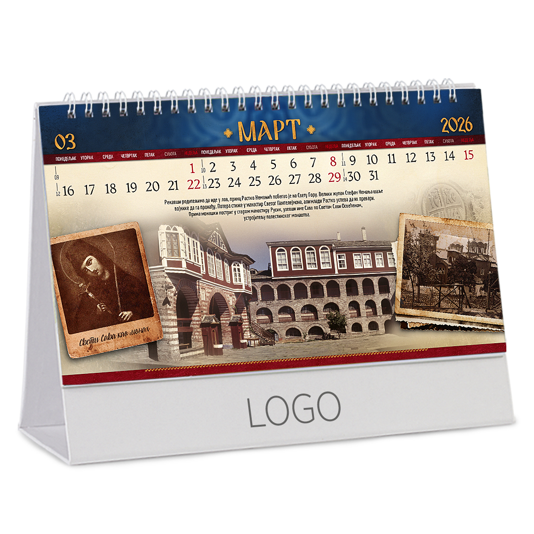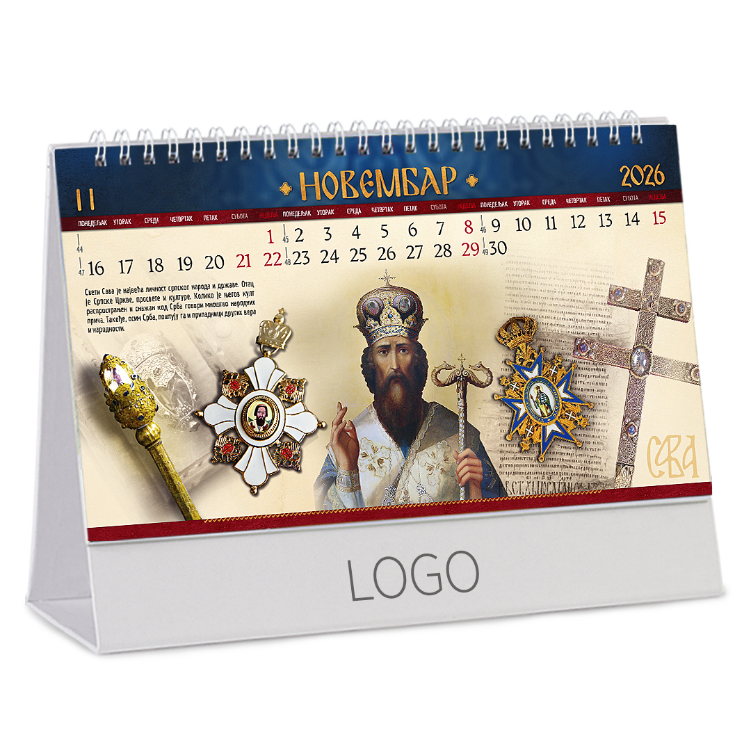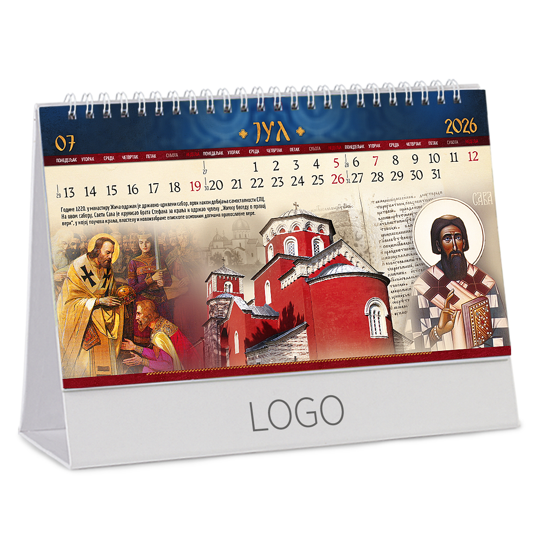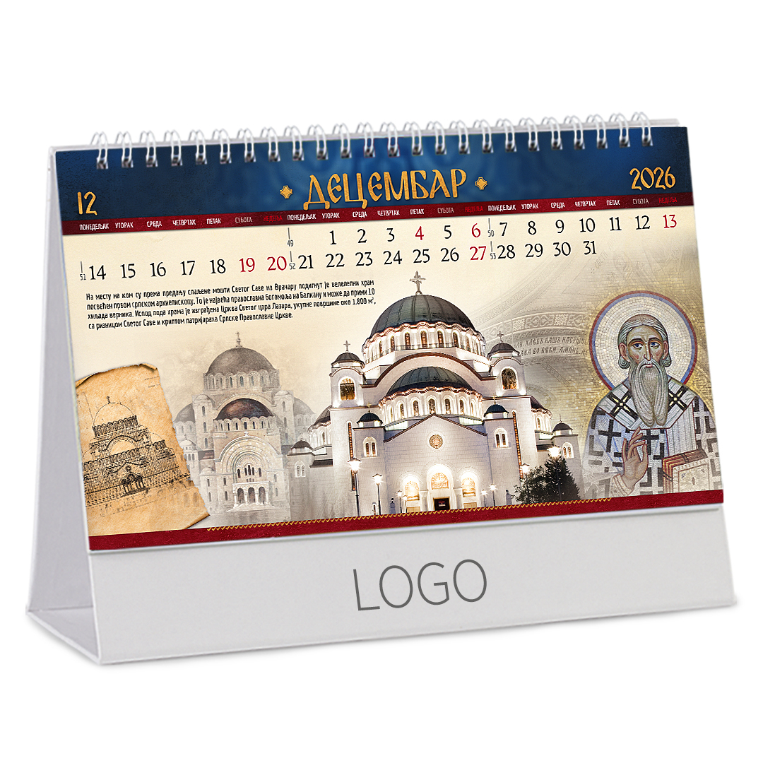 Stoni kalendar: 14 listova, mesečni, sa zlatotiskom na predlistu