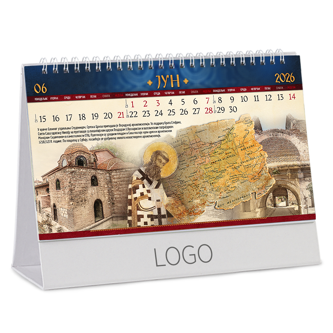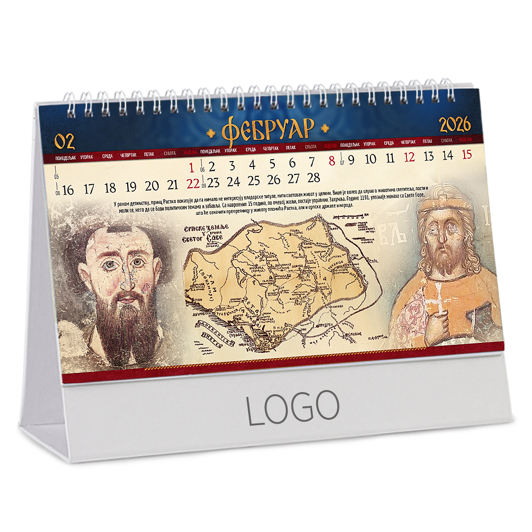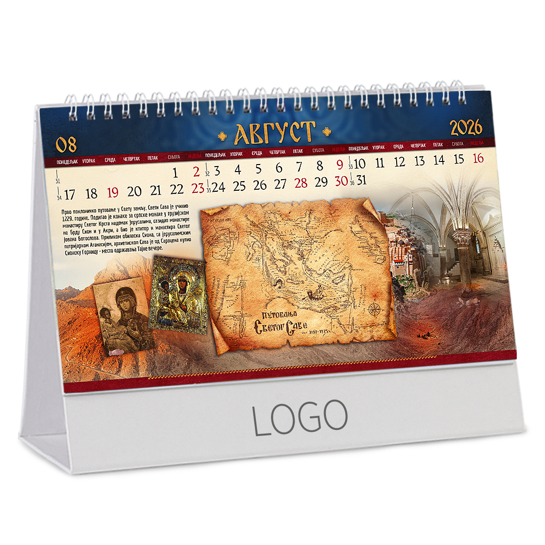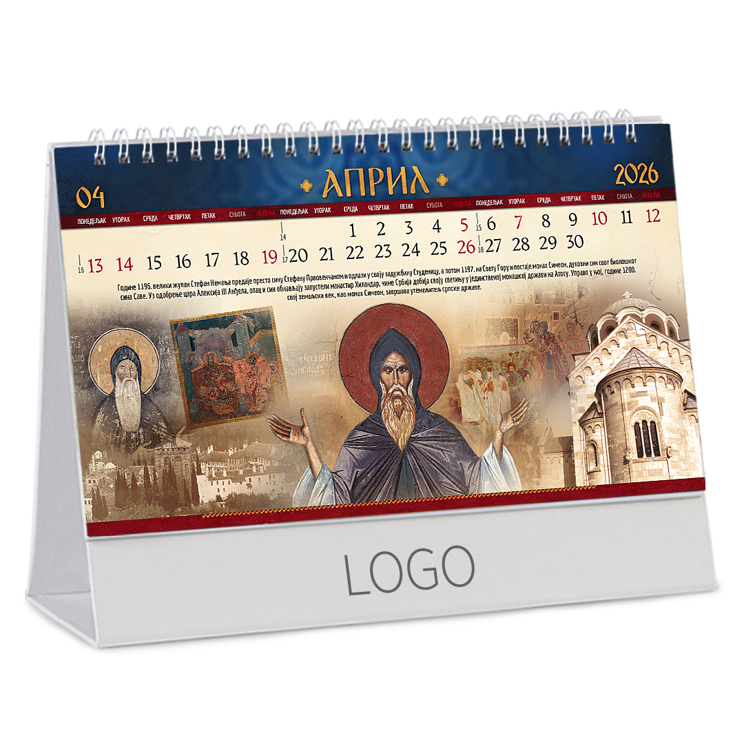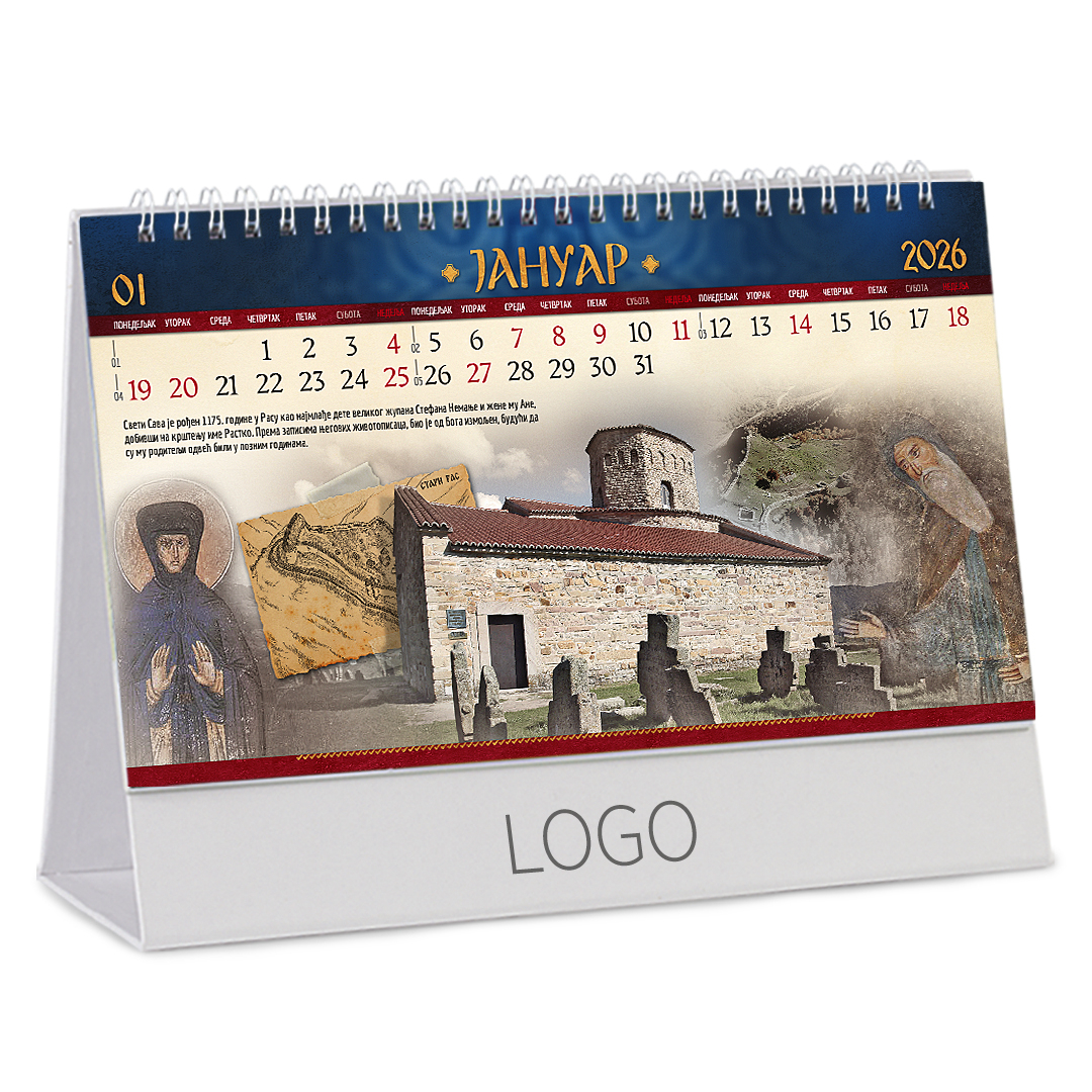 Stoni kalendar: 14 listova, mesečni, sa zlatotiskom na predlistu