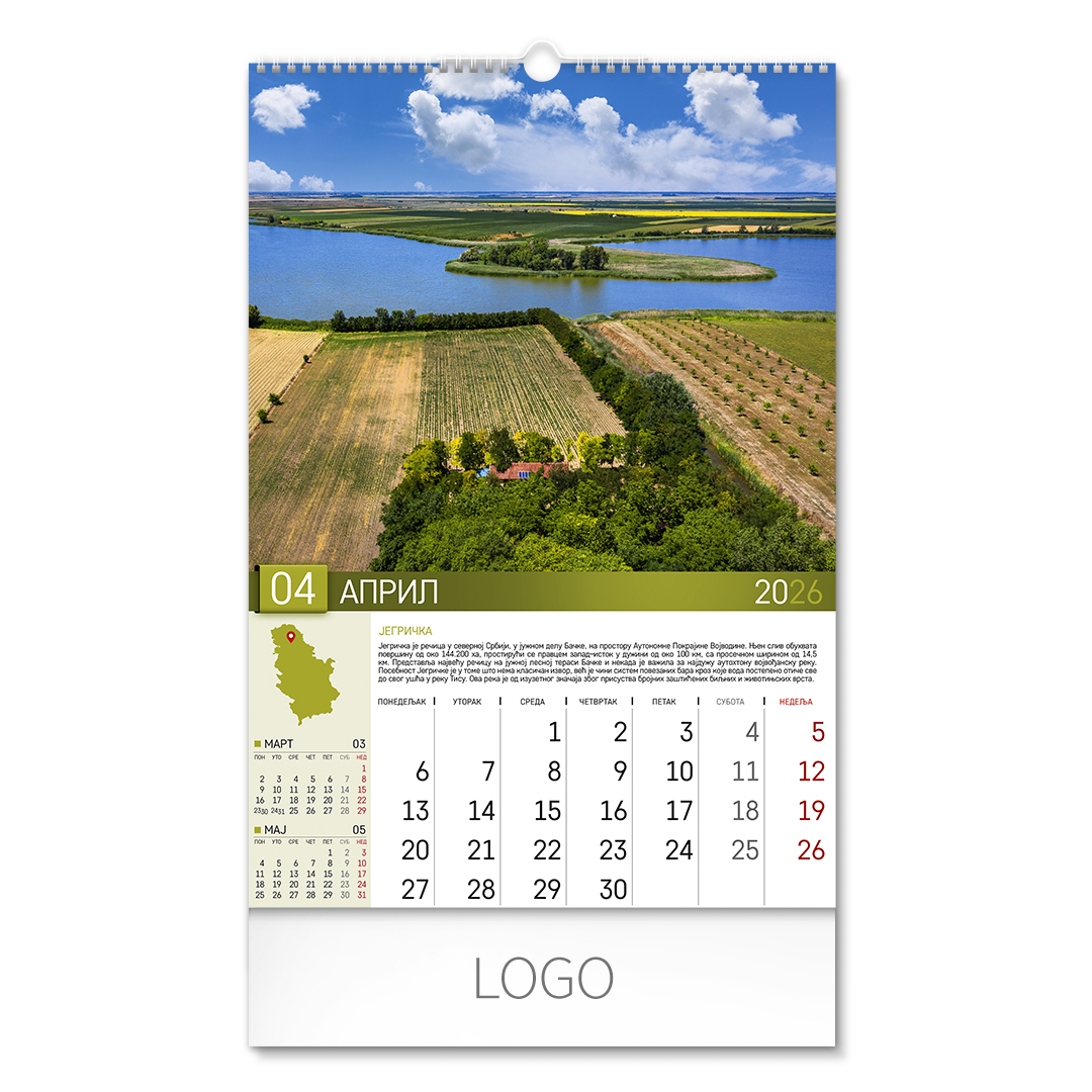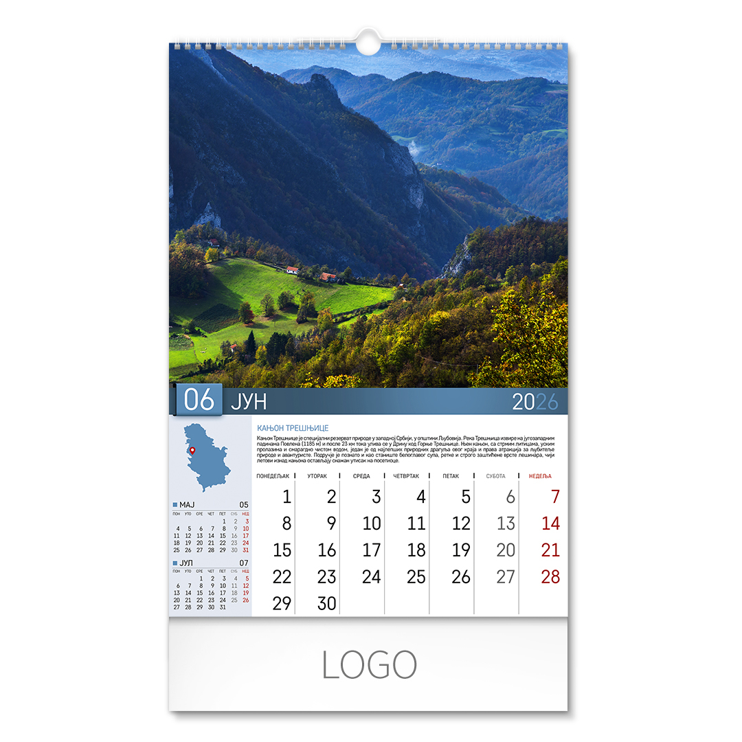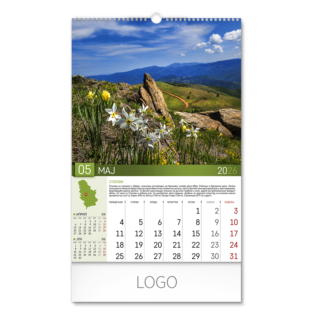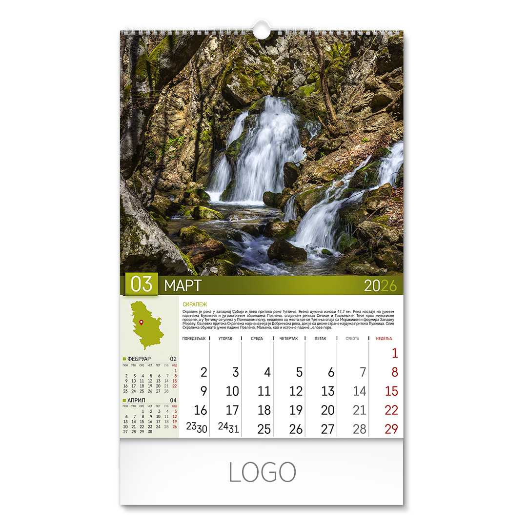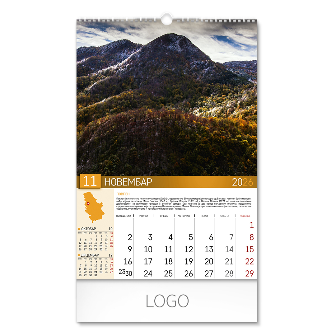 | Zidni kalendar | 13 listova, mesečni |